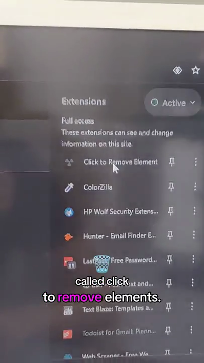 I'm grateful for the recommendation of the Click to Remove Element extension, as it perfectly matches what I was seeking. This tool allows me to efficiently edit websites by eliminating unnecessary elements. For instance, when using Gmail, I typically only make use of the email function and not the sidebar with chat and meet options. With Click to Remove Element installed, I can effortlessly remove the sidebar by simply highlighting and clicking on it.